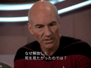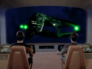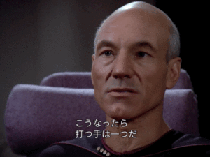ナギラムの真意を諮るためでしょうか、ピカード艦長は自爆シークエンスを継続したまま発進します。そして爆破数秒前に自爆を解除、エンタープライズは無事に脱出に成功しました。
