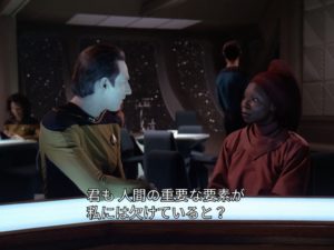 ガイナンのアドバイスで、データはホロデッキにロードした20世紀のコメディアンに相談することにしました。
